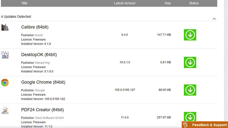 Spesso lo dimentichiamo ma tutti i prgrammi installati necessitano di aggiornamenti, difficile però sapere quando, a meno di non aprirli uno ad uno, grazie invece a questo utility potremo sapere subito quali software house hanno rilasciato updates e scaricarli subito tutti da una comoda finestra come questa tramite i pulsanti verdi, un bel risparmio di tempo vero?