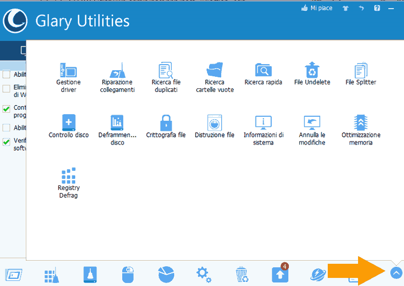 Non è finita qui! Glary Utilities offre ancora molto di più! premendo il pulsante in basso a destra si aprirà una schermata con molte altre utility, dalla gestione dei driver alla ricerca dei file duplicati, dalla crittografia allo svuotamento della memoria Ram.