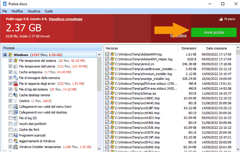 Basterà premere il pulsante verde Avvia pulizia e il gioco è fatto.